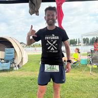 Shirt: Groen Frysman HeldenHelpers shirt van de 2e edysje 2016.Na een kleine 20 minuten rust, drinken, fruit en onderling contact staat iedereen weer in het startvak. 2 minuten voor de start klinkt er een fluitje en wordt iedereen verzocht zich bij de start te melden. Na de toeter besluit ik iets sneller te lopen omdat het fijn is toch meer in een eigen ritme te komen. Ik kom naast Onno Overes te lopen die ik afgelopen jaar ontmoet heb tijdens de 24u in Deventer waar hij 4e werd. Sinds dat moment is het een genot zijn progressie te volgen en de week totalen. Hij heeft al meerdere BYU ook langer dan 24 uur gedaan, kan heel constant lopen en is daarmee een goede atleet om mee te mogen strijden. (Als 2e passeer ik de streep met een rondetijd van 37'47)